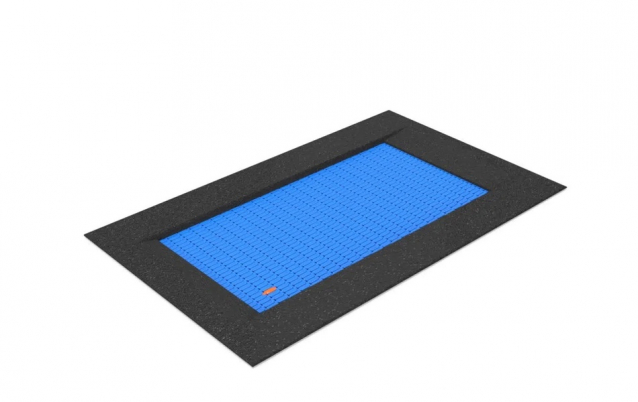 Mata do skakania wykonana z mocnych antypoślizgowych lamelek, pomiędzy którymi odstęp wynosi zaledwie 3 mm. Dzięki tak wąskim przestrzeniom, trampoliny 2.0 są nie tylko bardziej sprężyste i bezpieczne, ale także praktyczniejsze w codziennym użytkowaniu. Obudowa trampoliny zabezpieczona została elastyczną nakładką z granulatu sbr w kolorze czarny melanż.
