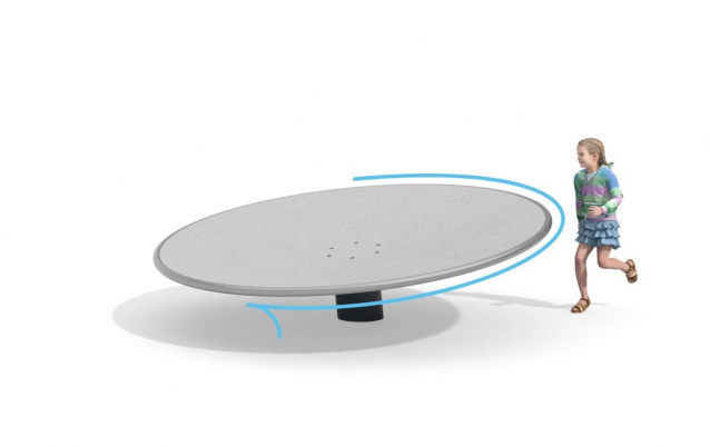 Karuzela Dysk 3m to duże i efektowne urządzenie, stworzone z myślą o przestronnych placach zabaw. Oferuje intensywną, pełną ruchu zabawę nawet dla 20 dzieci, które mogą położyć się na platformie i wspólnie doświadczać dynamicznego wirowania. Konstrukcja została zaprojektowana z najwyższą dbałością o bezpieczeństwo i spełnia wymagania normy PN-EN 1176-1:2017-12.