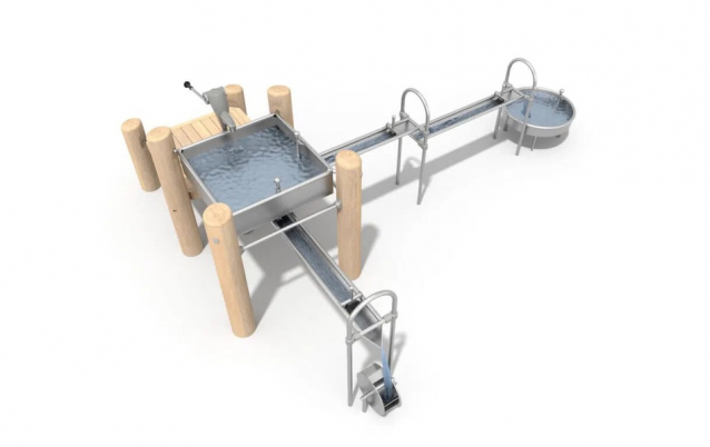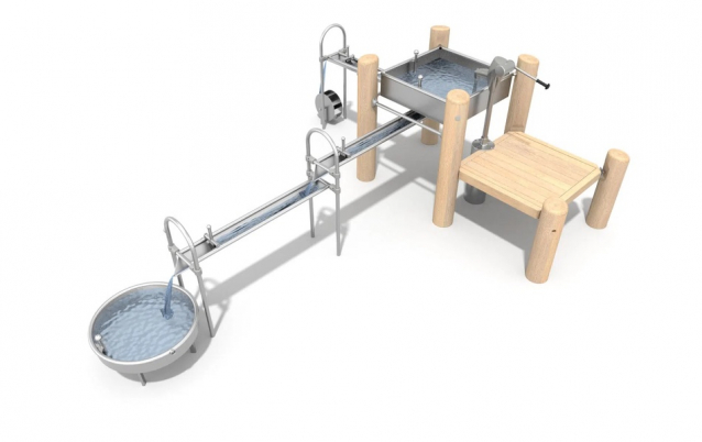 Zestaw Wodny Odkrywca Robinia to zestaw przeznaczony do zabawy wodą składający się na maszynę zbudowaną z elementów przelewowych na różnych poziomach: rynien, zbiorników, kuwety, turbiny wodnej, zapadni tamujących wodę i pompy która wprowadza wodę w obieg. Mali odkrywcy mogą wykonywać eksperymenty z przelewaniem wody, a także odkrywać podstawowe działania naukowe związane z przepływem wody. To urządzenie jest idealnym wyposażeniem naturalnych placów zabaw oraz obiektów znajdujących nad wodą.