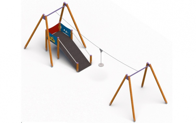 Zjazd linowy Tyrolka 4 to zestaw umożliwiający przemieszczanie się na linie w powietrzu pomiędzy dwoma punktami. Cała zabawa rozpoczyna się od podestu, gdzie uczestnik zabawy chwyta się tyrolki umożliwiającej zjazd po linie na koniec zestawu.