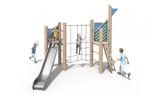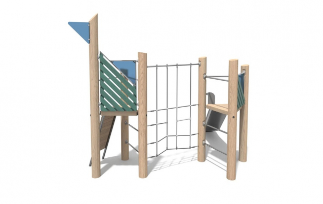 Zestaw Przygoda z serii Robinia to kompaktowy, ale pełen wyzwań zestaw dla aktywnych dzieci. Dwie trójkątne wieże można zdobywać na różne sposoby – po ściance wspinaczkowej, przeplotni linowej lub jednej z dwóch drabinek pionowych. Emocjonujący zjazd zapewnia zjeżdżalnia ze stali nierdzewnej. Zestaw rozwija sprawność i koordynację ruchową. Przeznaczony dla dzieci w wieku 3–12 lat.