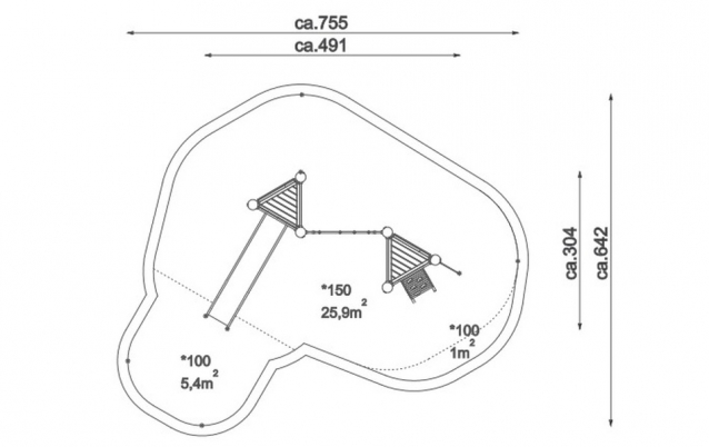 Urządzenia serii Robinia są wykonane z naturalnego drewna akacjowego, dlatego ich wymiar oraz wymiar stref bezpieczeństwa może różnić się o kilka centymetrów od podanych wymiarów.