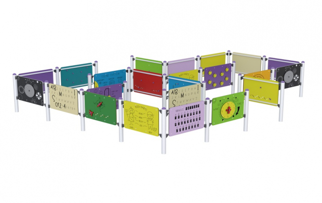 Labirynt edukacyjny Fantazja to zestaw składający się ze ścianek, między innymi funkcyjnych o charakterze edukacyjnym. Zabawę urozmaicają różnorodne zadania i wyzwania, dzięki którym dzieci uczą się poprzez aktywne poznawanie i odkrywanie.