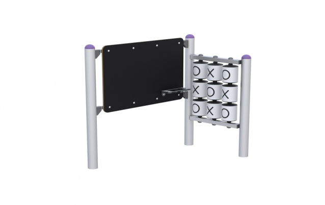 Tablica do rysowania i gry w kółko i krzyżyk 1 to edukacyjny wolnostojący panel z tablicą do rysowania oraz z grą kółko-krzyżyk.
