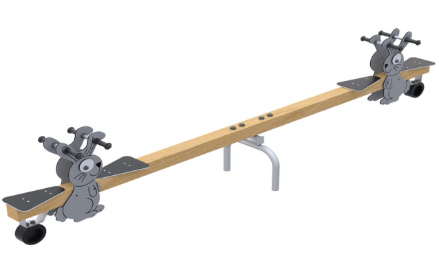 Huśtawka wagowa poczwórna Króliczki to klasyczna huśtawka typu przeciwwaga, przeznaczona do wspólnej zabawy dla czwórki dzieci jednocześnie. Huśtawki są nieodłącznym elementem placów zabaw, doskonale sprawdzą się zarówno na małych osiedlowych czy przedszkolnych placach zabaw, jak i dużych ogólnodostępnych obiektach.