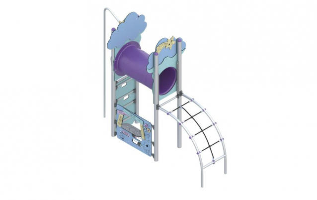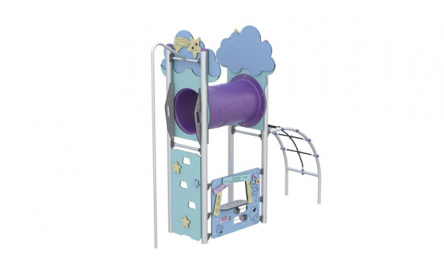 Zestaw Pastel to urządzenie na plac zabaw zapewnia dzieciom wiele atrakcji, takich jak zjazd strażacki, przejście tunelem, ścianka do wspinaczki, trap linowy oraz sklepik z ladą.