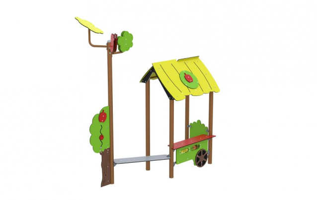 Stoisko Owoce to element na plac zabaw, który zapewnia dzieciom kreatywną zabawę.